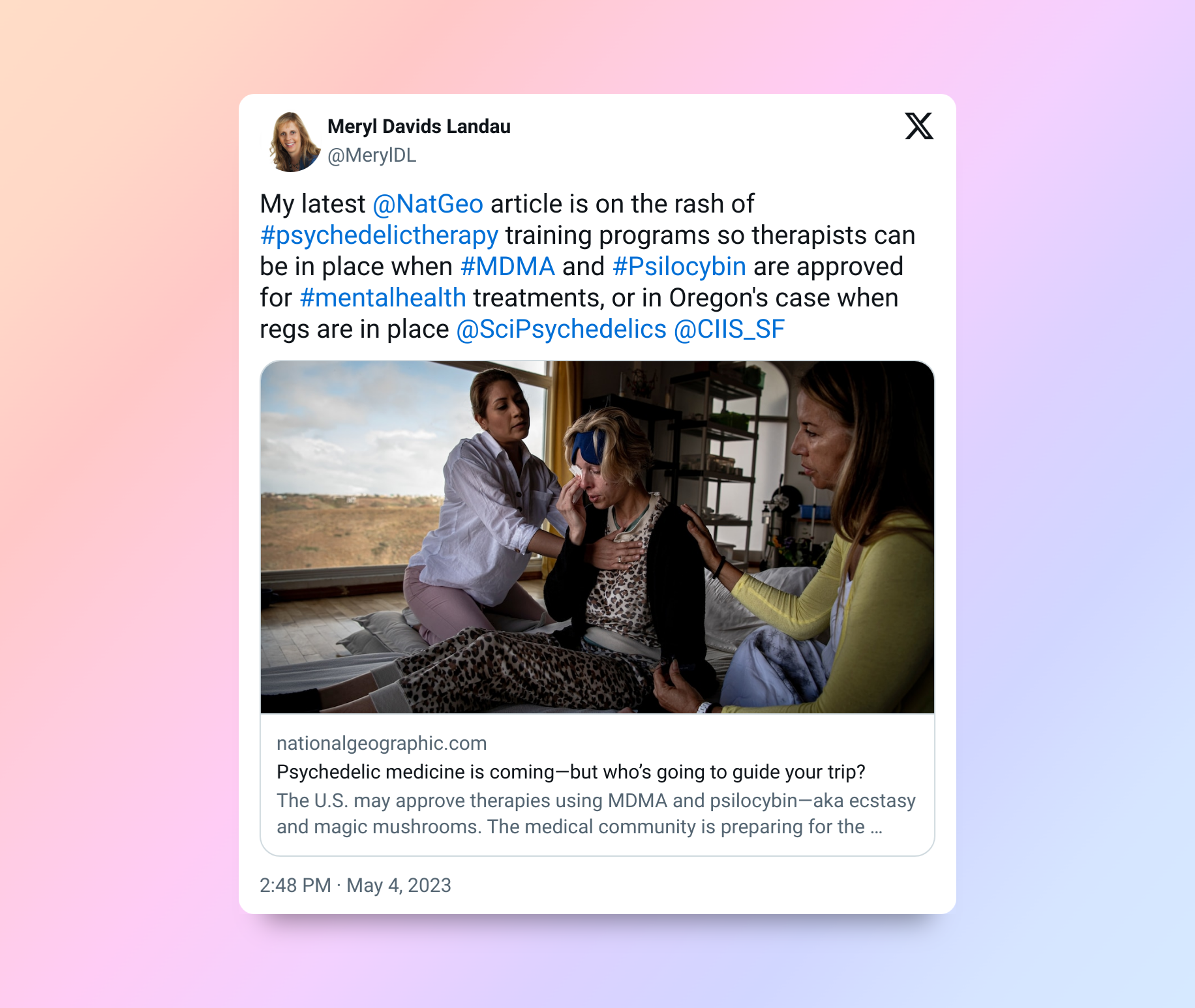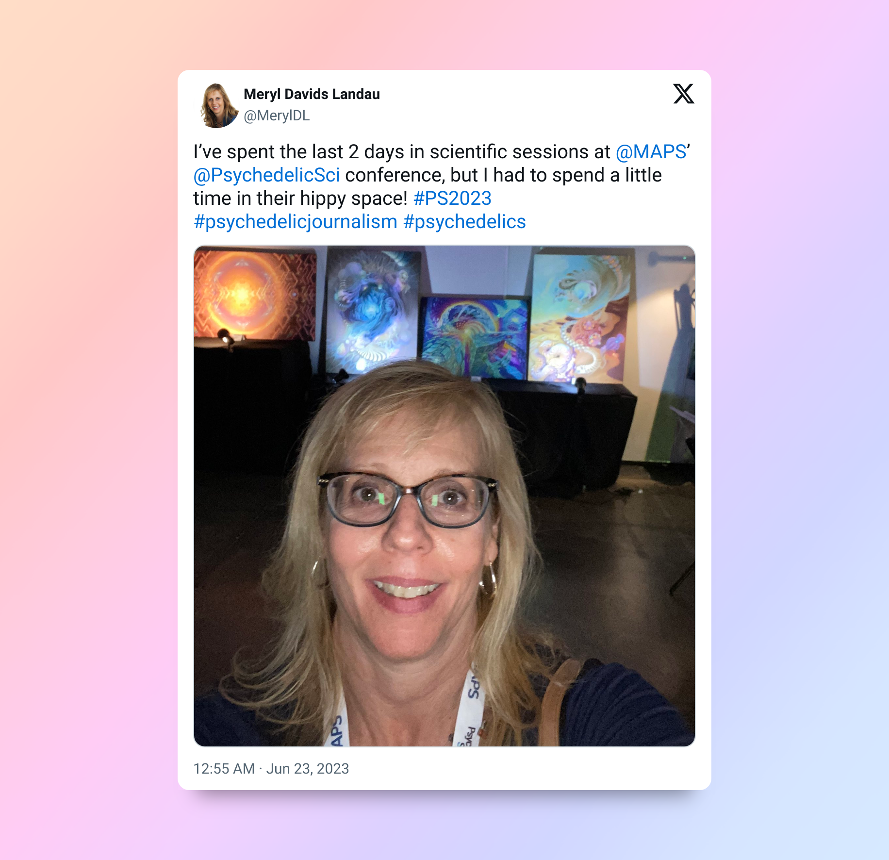 Meryl Davids Landau is a freelance journalist based in Florida. You can follow Meryl’s work on her website and X (formerly Twitter) and you can buy her books on Amazon. Her psychedelic journalism article about psilocybin will be published in late 2023 or early 2024.